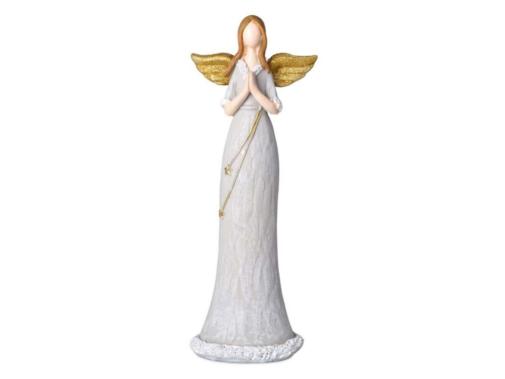 Tento anjelik vysoký 24 cm sa stane krásnym doplnkom vášho vianočného aranžmánu, ale aj celoročnou dekoráciou, ktorá symbolizuje nádej, vieru a ochranu. Skvele vyzerá na polici, krbovej rímse, komode či nočnom stolíku a je možné ho kombinovať s ďalšími sezónnymi ozdobami.