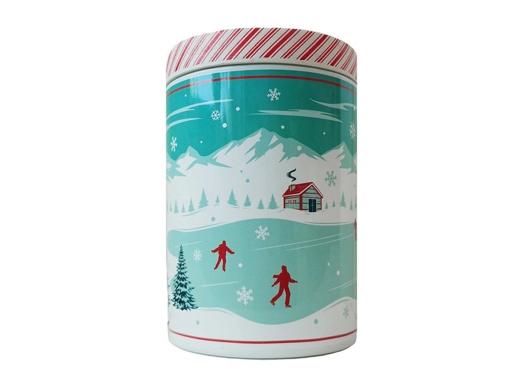- Dizajn: sklenená nádoba s motívom zimnej krajiny, vianočné farebné prevedenie s dreveným viečkom