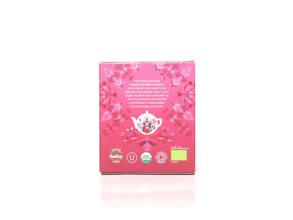 English Tea Shop ponúka čisto prírodné čaje bez syntetických príchutí a farbív. English Tea Shop nesie certifikáty bio, fairtrade a všetok obalový materiál aj samotné čajové vrecká sú biologicky odbúrateľné a recyklovateľné. Ich výroba je úplne bezuhlíková.