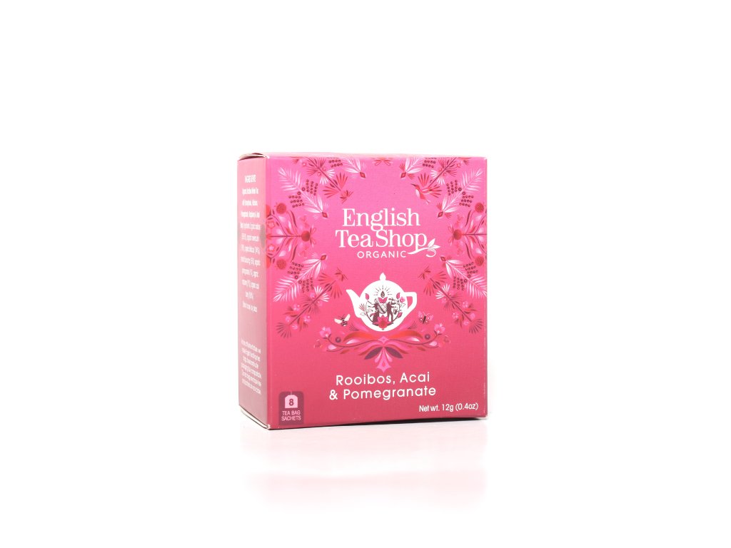 Čaj Rooibos, acai a granátové jablko v bio kvalite značky Tea Shop vás poteší svojou sladkou medovou chuťou. Vďaka kombinácii granátového jablka, malín a acai má čaj ovocnú chuť s dávkou antioxidantov. Čaj je úplne bez kofeínu a je vhodný pre deti, tehotné a dojčiace ženy.
