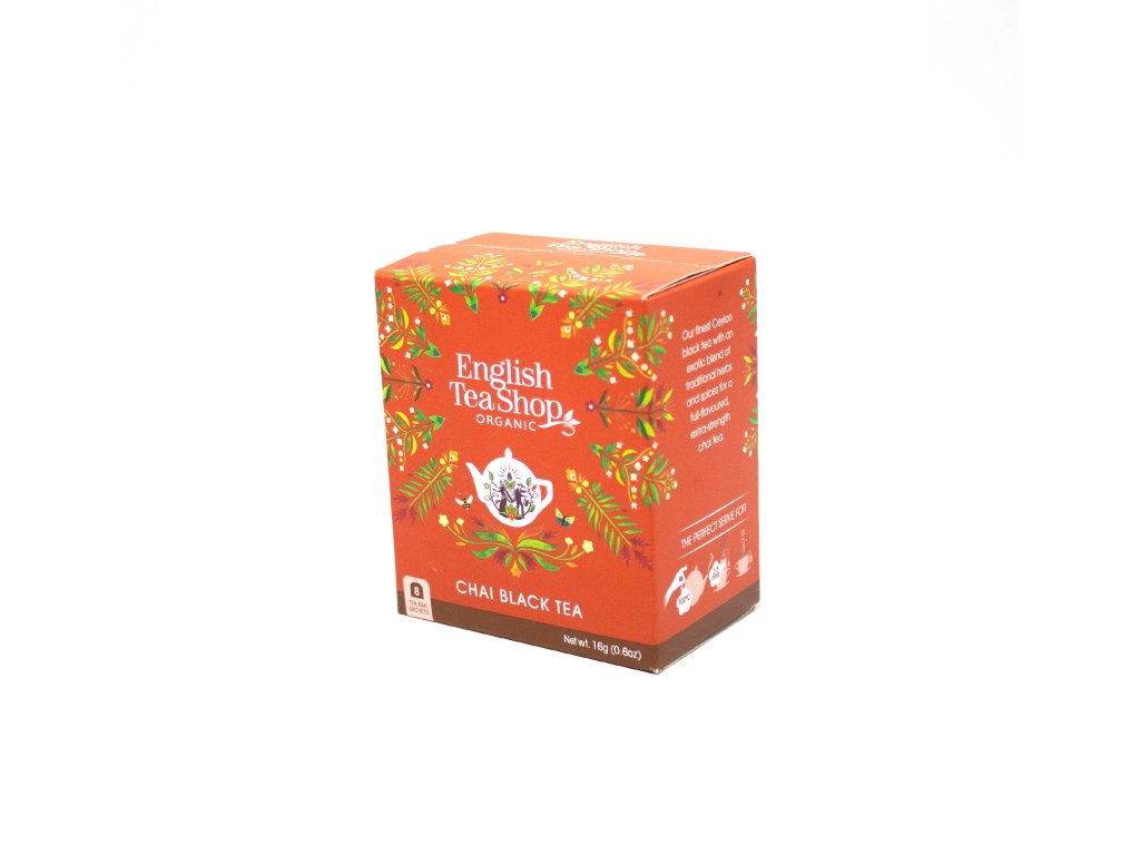Čierny chai tea v bio kvalite od značky English Tea Shop má exotickú zemitú chuť. Ide o čierny čaj, ktorý je obohatený korením chai, ktoré dohromady tvoria jedinečnú pochúťku.