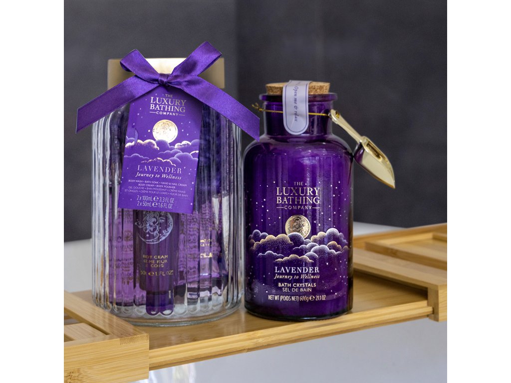 Kolekcia Levanduľa (Lavender) – Journey to Wellness využíva aromaterapeutické účinky esenciálnych olejov z levandule, ktoré pomáhajú upokojiť myseľ a navodiť hlboký spánok.