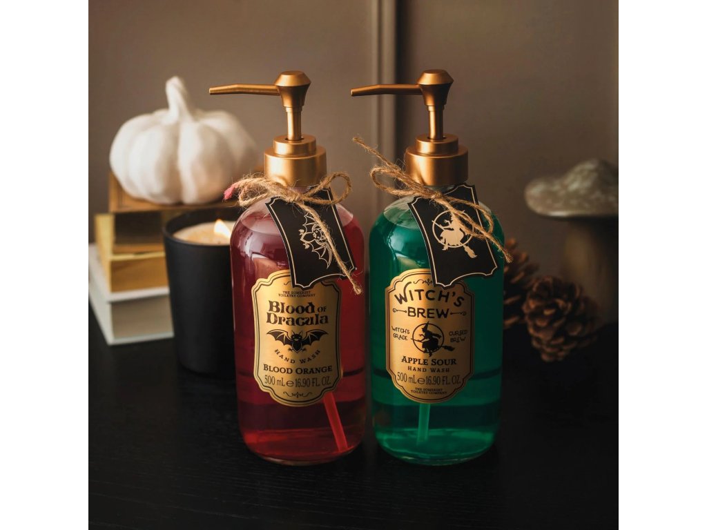 Strašidelne voňavé halloweenské mydlo na ruke s krvavým pomarančom. Limitovaná edícia vo fľaštičke pripomínajúca Draculov elixír – perfektný doplnok pre vaše halloweenské...