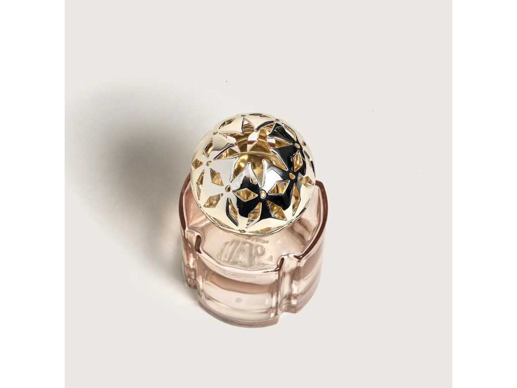 Jemne lakované sklo v elegantnom béžovo-ružovom tóne s dekoratívnou zlatou korunkou Pomelis, inšpirovanú historickými pomandrami. - 250 ml náplň s vôňou Vanilla Magnificence - Vznešená Vanilka
