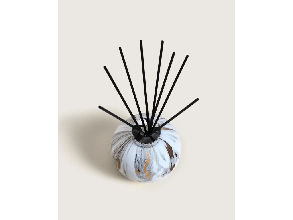 Biely mramorovaný vonný difuzér Marbled je výnimočným prírastkom do našej mramorovanej kolekcie. Jeho sofistikovaný dizajn vo svetlých odtieňoch nápadne kontrastuje s priehľadnosťou skla a bez problémov podčiarkne akýkoľvek dekoratívny štýl.