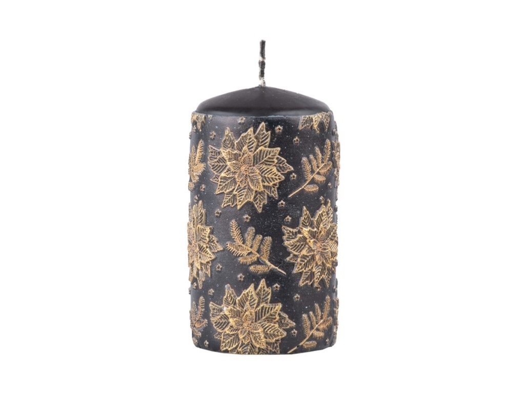 Vianočná sviečka Vianočná hviezda, čierna so zlatým plastickým dekorom, valec