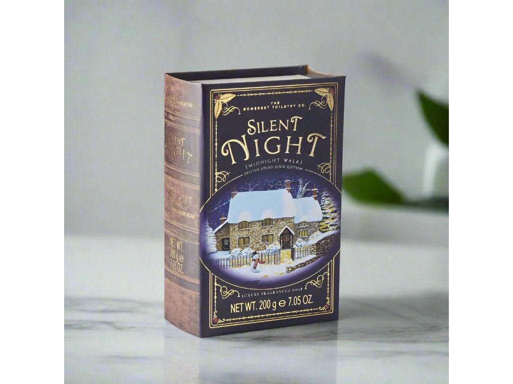 Doprajte si chvíľu vianočné pohody s originálnym mydlom Silent Night – Midnight Walk, ukrytým v elegantnej krabičke v tvare kúzelnej knihy. Tento jedinečný dizajnový kúsok ozdobí vašu kúpeľňu a stane sa krásnym darčekom, ktorý poteší svojou originalitou aj praktickým využitím.
