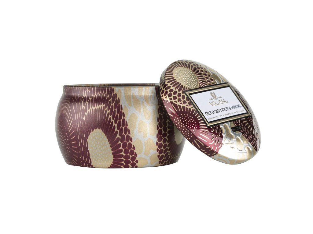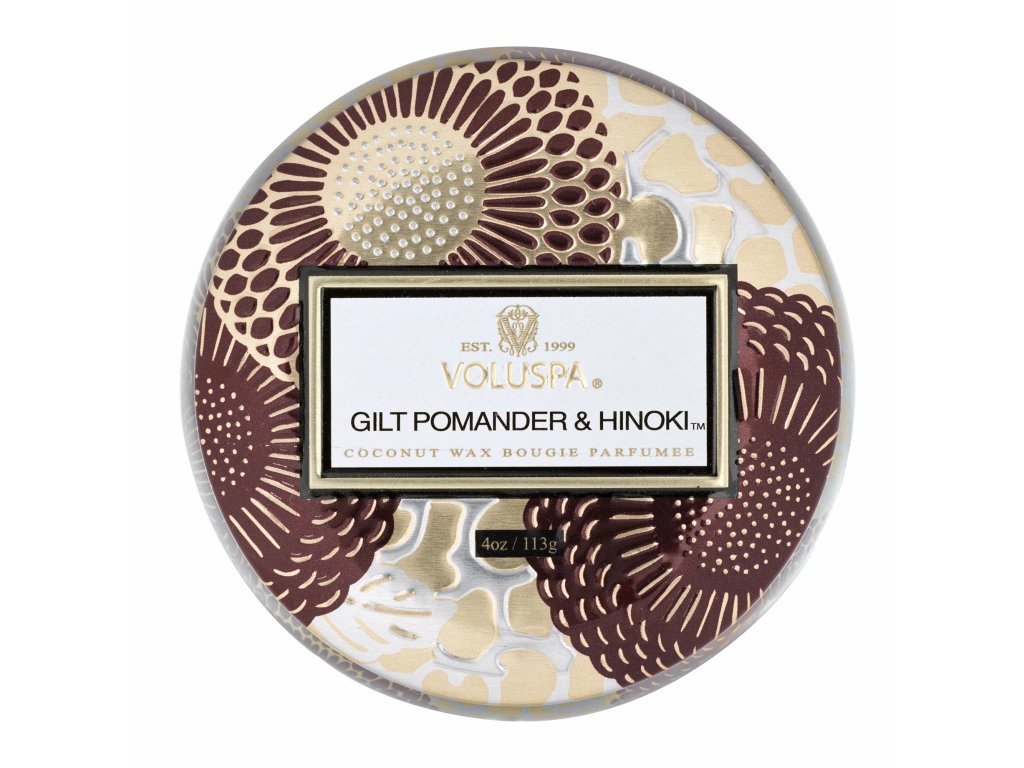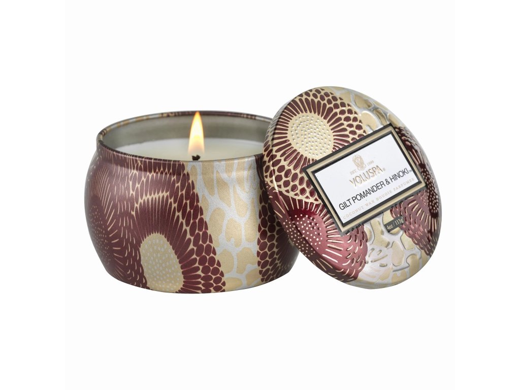 Voluspa – Vonná sviečka v plechovke Gilt Pomander Hinoki, Malá