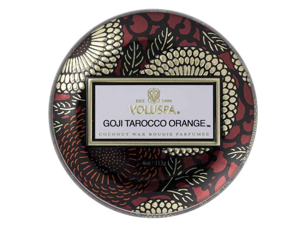 Voluspa – Vonná sviečka v plechovke Goji Tarocco Orange, Malá