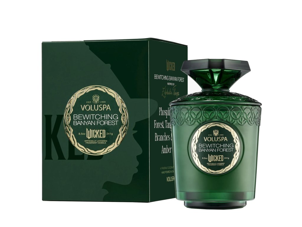 Táto edícia je inšpirovaná ikonickým muzikálom a filmom Wicked, konkrétne postavou Elphaby. Vôňa aj dizajn sviečky odráža jej tajomnú, zelenú a nespútanú energiu. Pokiaľ milujete príbehy o kúzloch, odvahe a hľadaní vlastnej sily, Bewitching Banyan Forest vám doma vykúzli atmosféru plnú mágie, ktorá vás prenesie priamo na Broadway.