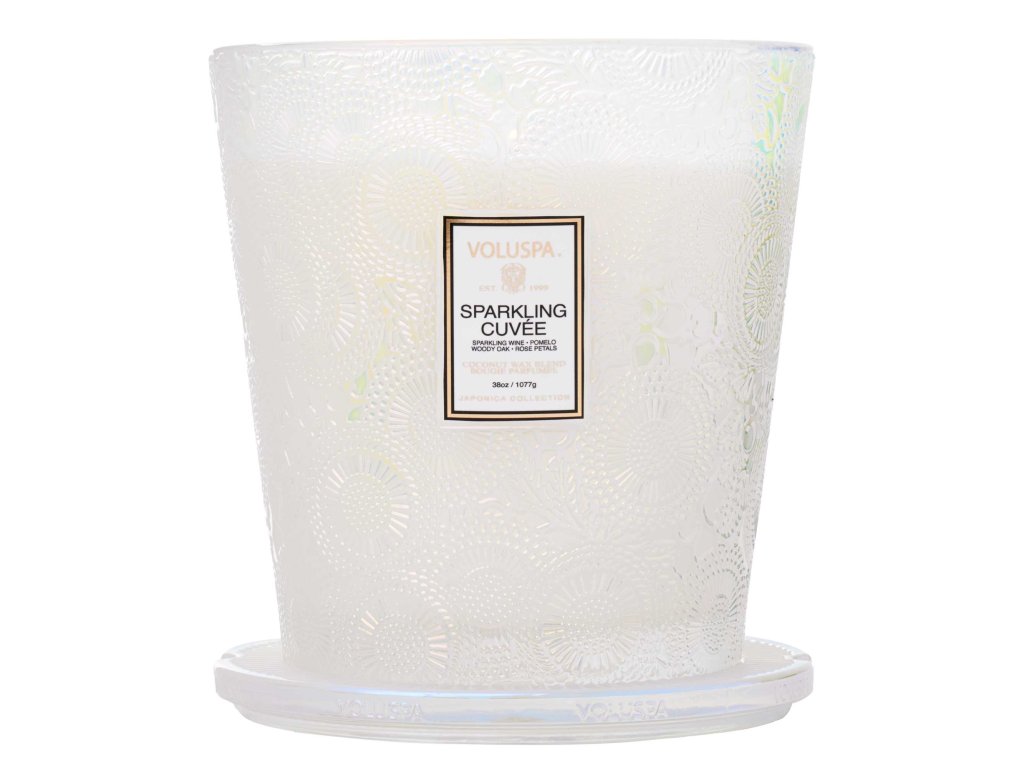Jedinečná zmes kokosového vosku sa ručne nalieva do embosovanej sklenenej nádoby a je zakončená skleneným viečkom v rovnakom dizajne, ktorý udržuje sviečku bez prachu, keď sa nepoužíva. Tri knôty vám umožnia užívať si vôňu po dobu 80 hodín. Voluspa sviečky sú ručne odlievané v Spojených štátoch a obsahujú patentovanú, čisto horiacu zmes kokosového vosku a 100% prírodné knôty. Voluspa produkty neobsahujú ftaláty, pesticídy, parabény a sulfáty a nikdy nie sú testované na zvieratách. Po vypálení vdýchnite tomuto nádhernému poháru nový život.