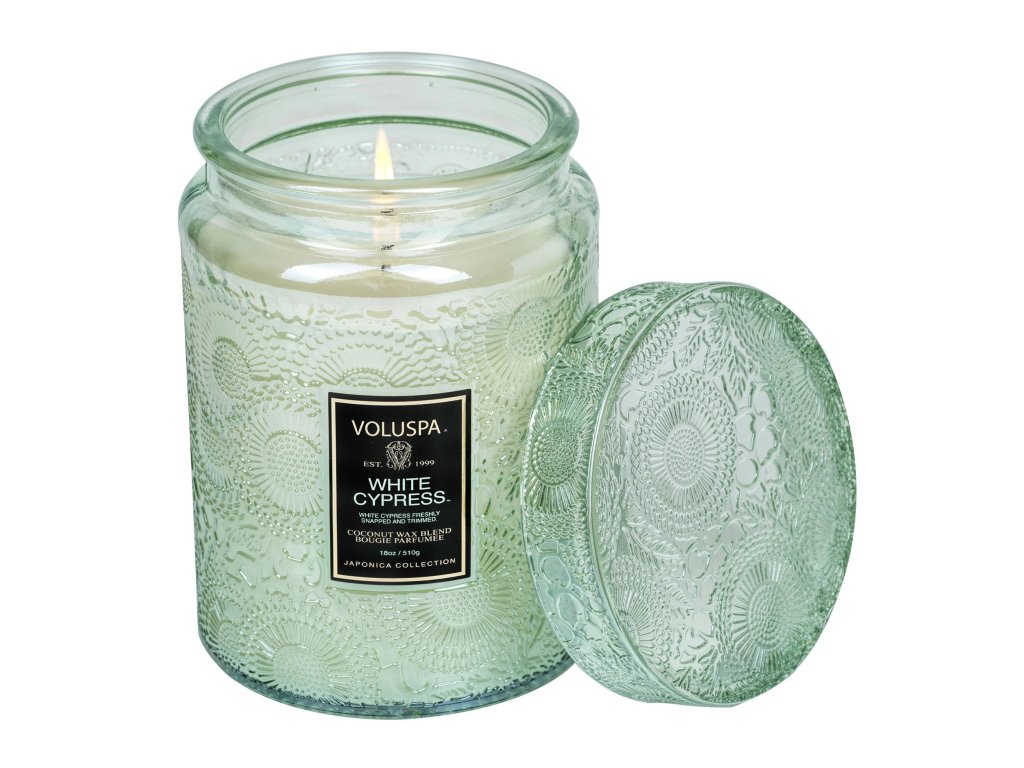 Voluspa – Vonná sviečka v skle White Cypress, Veľká