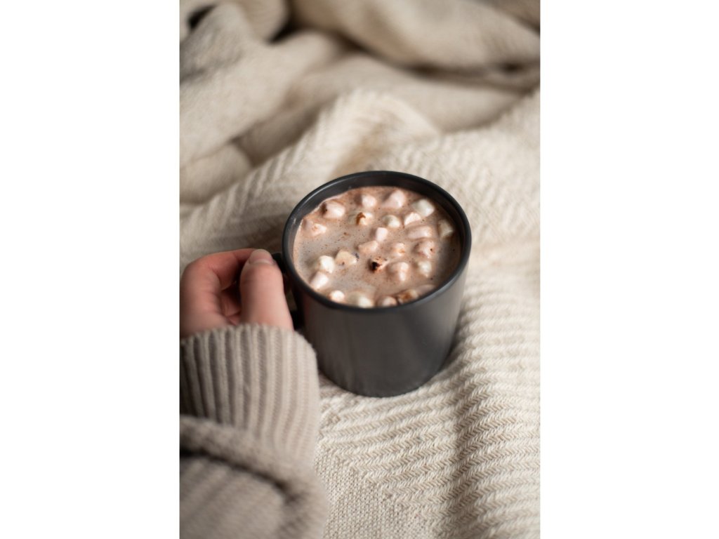 Zloženie: Biela čokoláda (cukor, kakaové maslo, sušené plnotučné mlieko, kakaová hmota, sušená srvátka, sójový lecitín, prírodná vanilková aróma), marshmallow 20% hm. (glukózo-fruktózový sirup, cukor, voda, bravčová želatína, dextróza, kukuričný škrob, vanilková aróma, farbivo: E162), zmes na horúcu čokoládu (kakaová hmota, cukor, kakaový prášok so zníženým obsahom cukru)